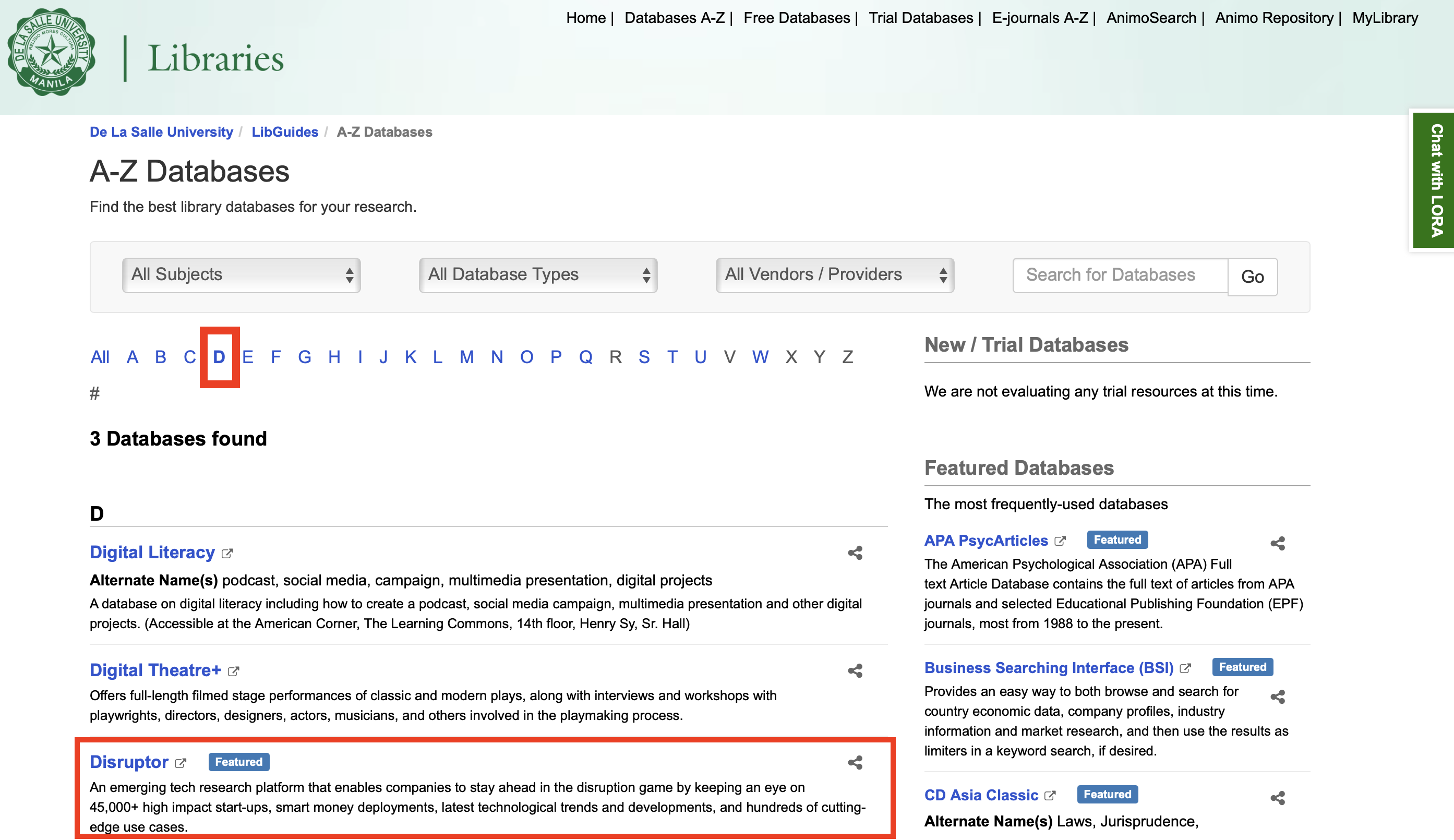 For account activation or reactivation, send an email to library@dlsu.edu.ph or chat with LORA.