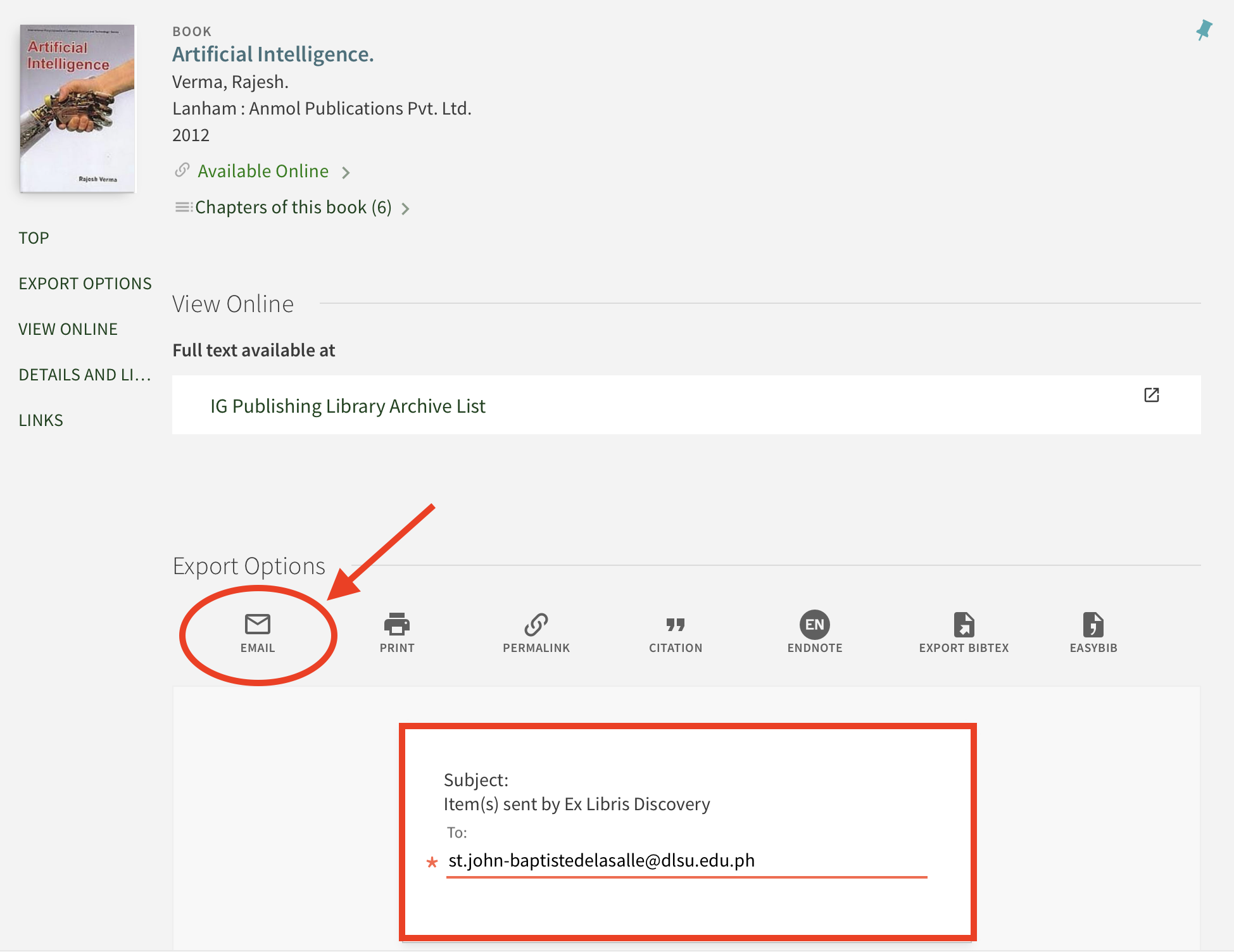 Emailing Metadata - for easy sharing, click on Email to send the item's metadata to someone or to your own email.