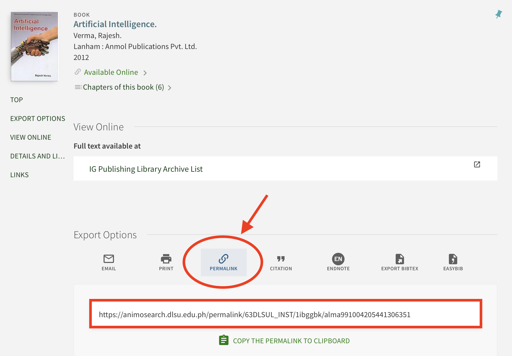 If you simply want to bookmark the item's metadata, click on Permalink to copy the URL.