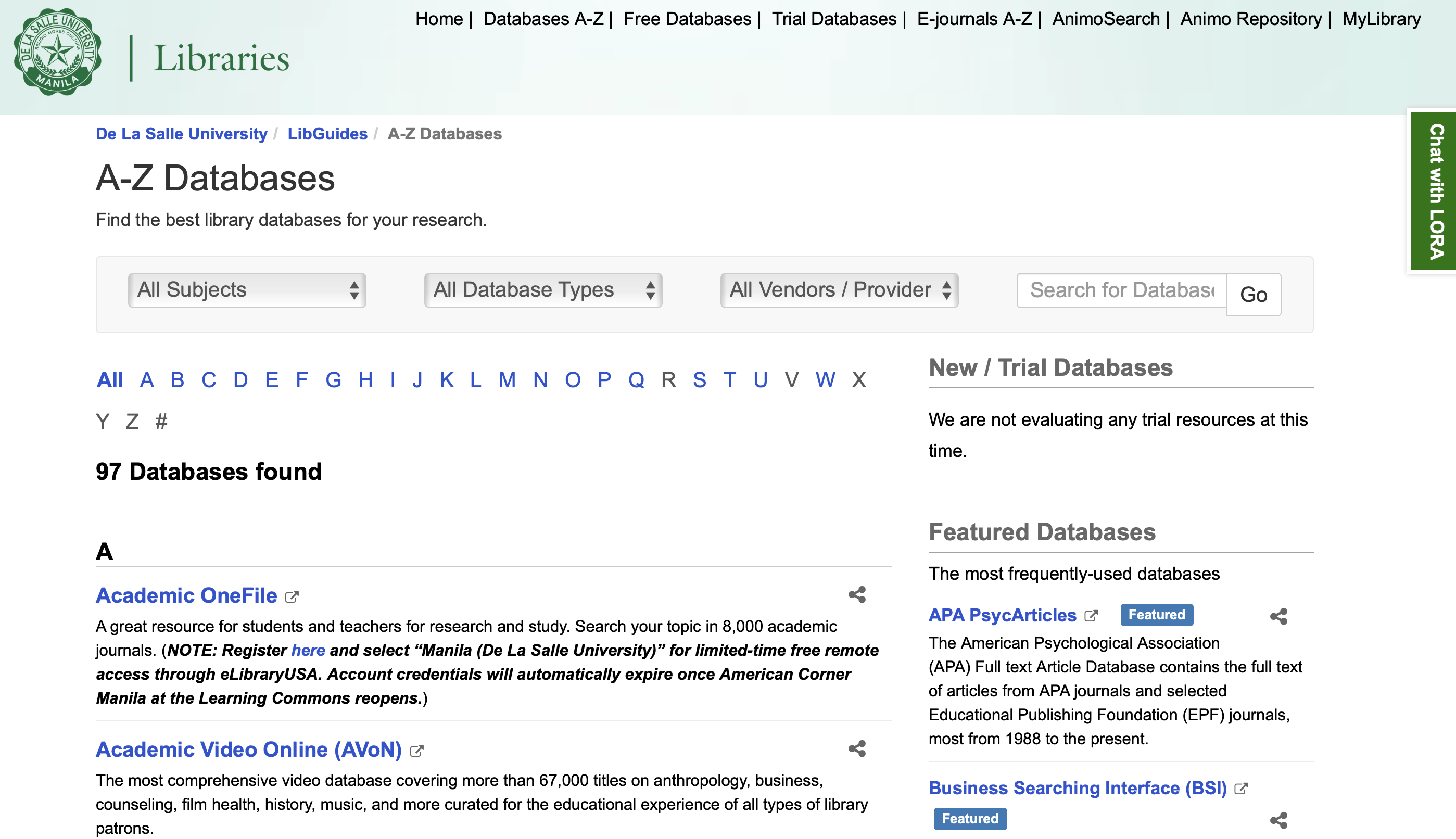 1. Go to AnimoSearch (http://animosearch.dlsu.edu.ph) then click A to Z Databases